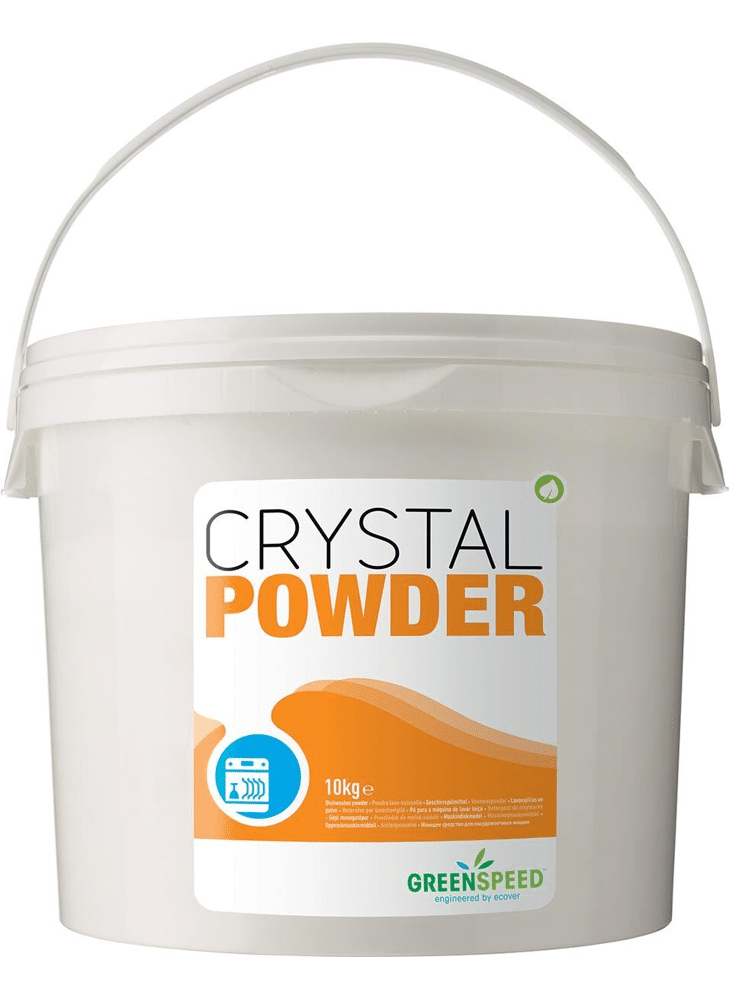 Crystal Powder is een ecologisch vaatwaspoeder voor professioneel gebruik. Het product kan gebruikt worden in huishoudelijke en semiindustriële machines. Dit mild alkalisch product vermijdt kalkneerslag door middel van perfect afbreekbare water onthardende stoffen. Glazen en hotelporselein worden niet aangetast dankzij de afwezigheid van agressieve stoffen. Crystal Powder is onschadelijk voor leidingen, rubber en RVS. Crystal Powder is vrij van chloor- of andere halogeenverbindingen, van minerale zuren en van detergenten afgeleid van petroleum. Alle gebruikte detergenten zijn van plantaardige oorsprong. Alle ingrediënten van niet-minerale oorsprong zijn volledig biologisch afbreekbaar.