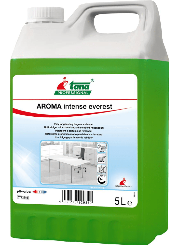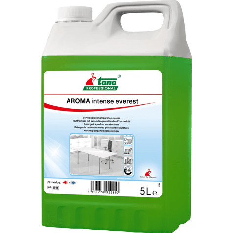AROMA intense everest reinigt en ontgeurt efficiënt en laat tot wel 24 uur lang een aangenaam aroma van groene bossen met een vleugje citrus achter. Het kan met de hand of machinaal worden aangebracht.