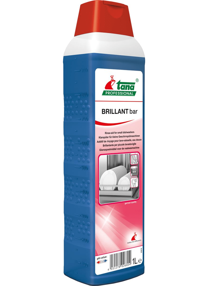 verhoogt de prestaties en efficiëntie van de machine door storende schuimvorming te vermijden. - BRILLANT bar maakt het mogelijk om kosten te besparen dankzij zijn hoge concentratie en gemakkelijk doseersysteem. - BRILLANT bar voorkomt de afzetting van kalkaanslag op potten en pannen, neutraliseert de alkalische resten op de vaat, waardoor gelijkmatige resultaten worden bereikt, het servies sneller opnieuw kan worden gebruikt en het werk efficiënter verloopt. Toepassingsgebied - BRILLANT bar is geschikt voor alle typen vaatwassers.