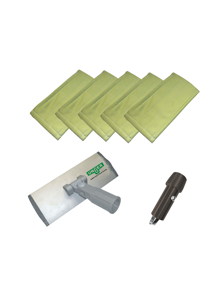 • Flexibele aluminium-padhouder met klittenband en microvezelpads voor het opzetten.