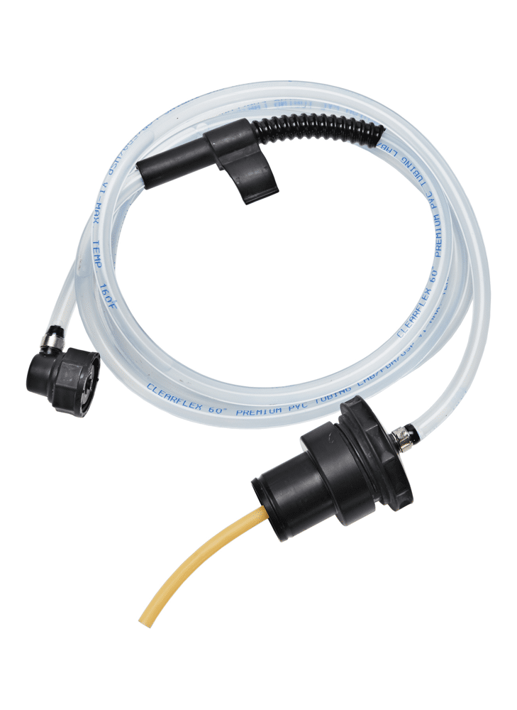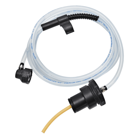 - Aansluiting van de slang op de erGO! steel, inclusief koppelstuk dispenser-slang