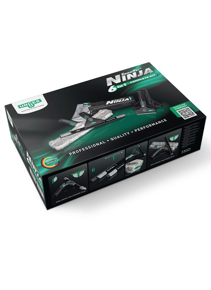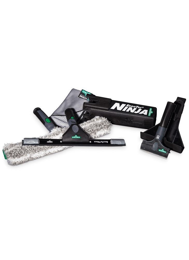 Premium glasreinigingskit met high performance NINJA gereedschappen voor allerhande reinigingswerkzaamheden - top performance voor de professionele glazenwasser.