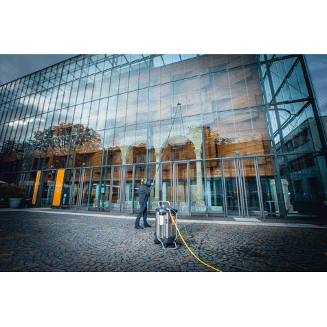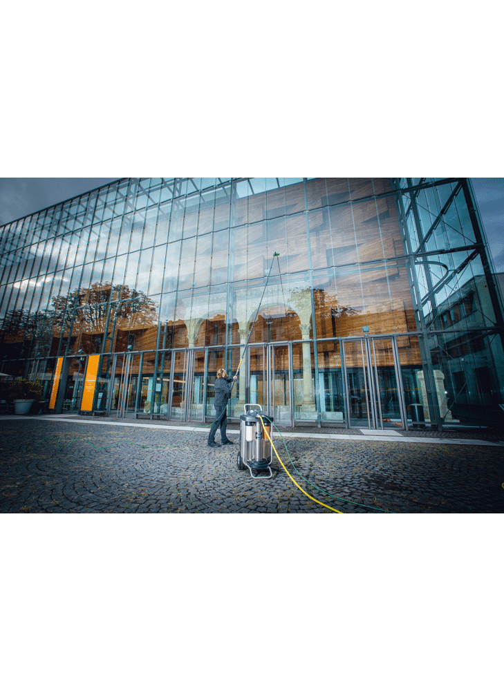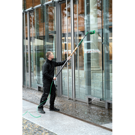 - Geleiding van de nieuwe, zeer flexibele DuroFlex slang door de telescoopsteel voor het probleemloos reinigen van ruiten en gevels
